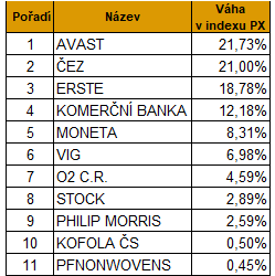 váha v hlavním indexu PX dosáhla 3,44 %. Následně toto úterý pak došlo k avizovanému