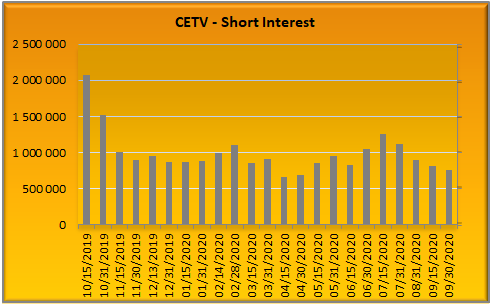 Vývoj short pozic na akciích CETV od doby oznámení převzetí firmy (28.10.2019), resp. od 15.10.2019