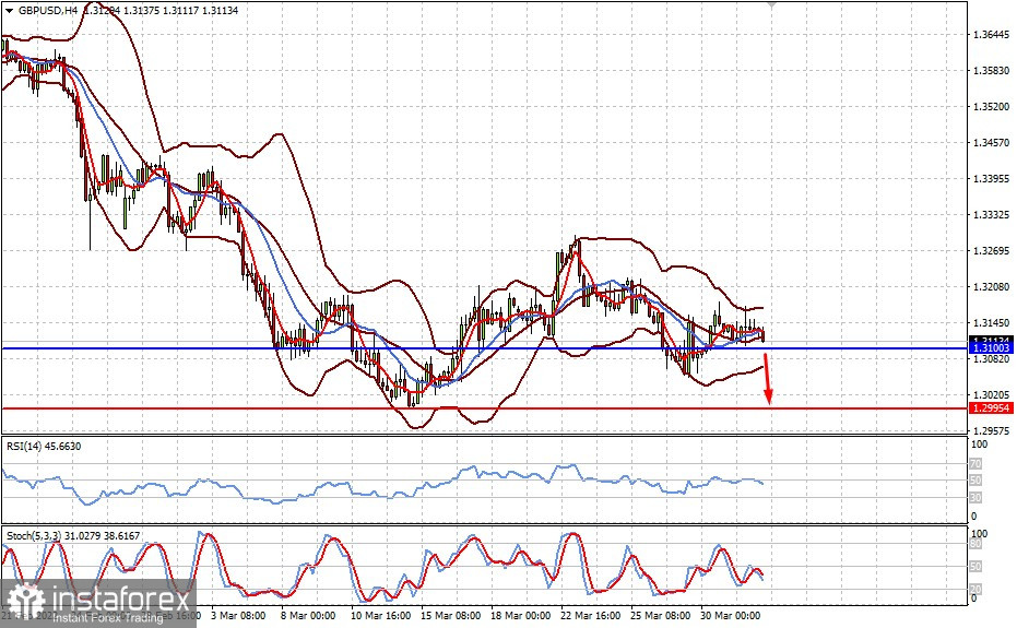GBP/USD se obchoduje nad 1,3100 v očekávání březnových údajů o nezaměstnanosti v USA a také indexu obchodní aktivity ve Spojeném království. Dobré zprávy z USA a slabé údaje z Velké Británie by mohly vést k poklesu směrem k 1,2995.