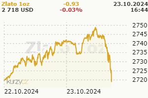 Zlato po dosažení dalšího historického rekordu v blízkosti 2750 USD za unci výrazně korigovalo. Důvodem byl zřejmě především posilující dolar. Žlutý kov jeho posilování, které je tradičně pro komodity negativním motivem, v několika minulých dnech úspěšně ignoroval, což se dnes zřejmě zlomilo.
