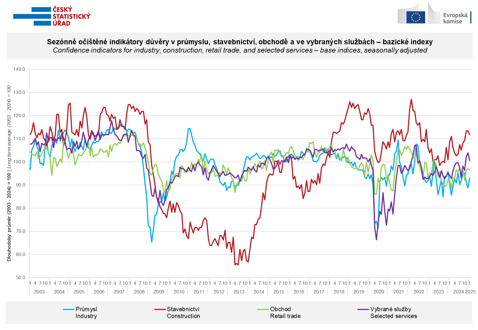 v rychlé informaci ČSÚ. Pro rok 2025 bude bazické období vypočteno jako průměr údajů za období leden 2003 až prosinec 2024. Dlouhodobý průměr se přepočítává jednou ročně a to vždy v termínu publikování rychlé informace za leden.