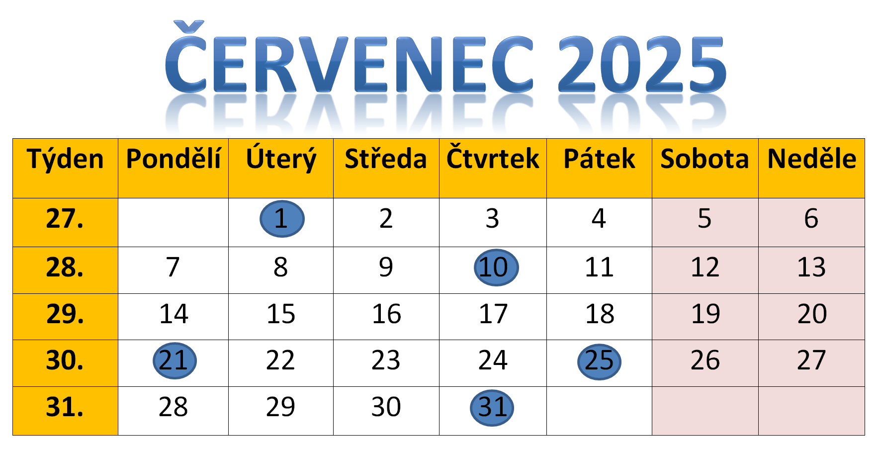- dalším důležitým datem je 21.7.2025 - je to splatnost paušální zálohy na daň z příjmů. Maximálně v tento den je také potřeba měsíční odvod úhrnu sražených záloh na daň z příjmů fyzických osob ze závislé činnosti za měsíc červen 2025.