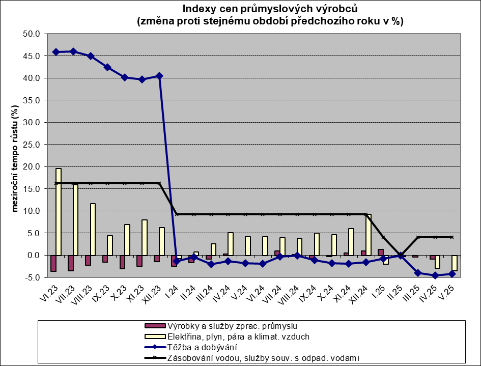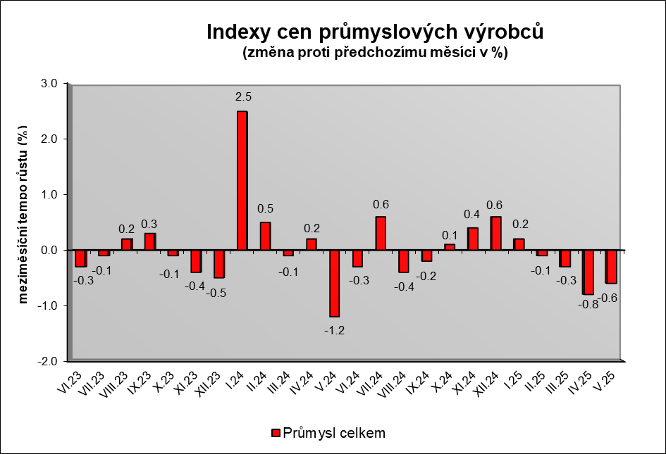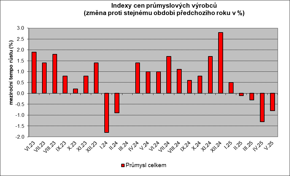 Vývoj cen průmyslových výrobců v květnu 2025