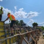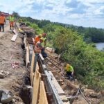 Původní opěrná zeď už byla odstraněna, na místě teď probíhá postupná výstavba nové. Odvrtány byly mikropiloty a práce, které znesnadňuje značně jílovité podloží se nyní soustřeďují na založení nové zdi, instalaci armatur a následně bude provedena betonáž. Současně bude rekonstruována přilehlá poloviny vozovky silnice I/9, která už byla odfrézována a nyní budeme sanovat podkladní vrstvy. Každý den tudy projede na 10 000 aut, z toho přibližně pětinu tvoří nákladní doprava. Na stavbě se denně podílí na 20 dělníků. Ti aktuálně pracují ve svahu, nad železniční tratí.