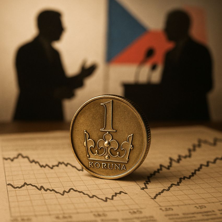 Koruna koriguje, prim hrají politické události