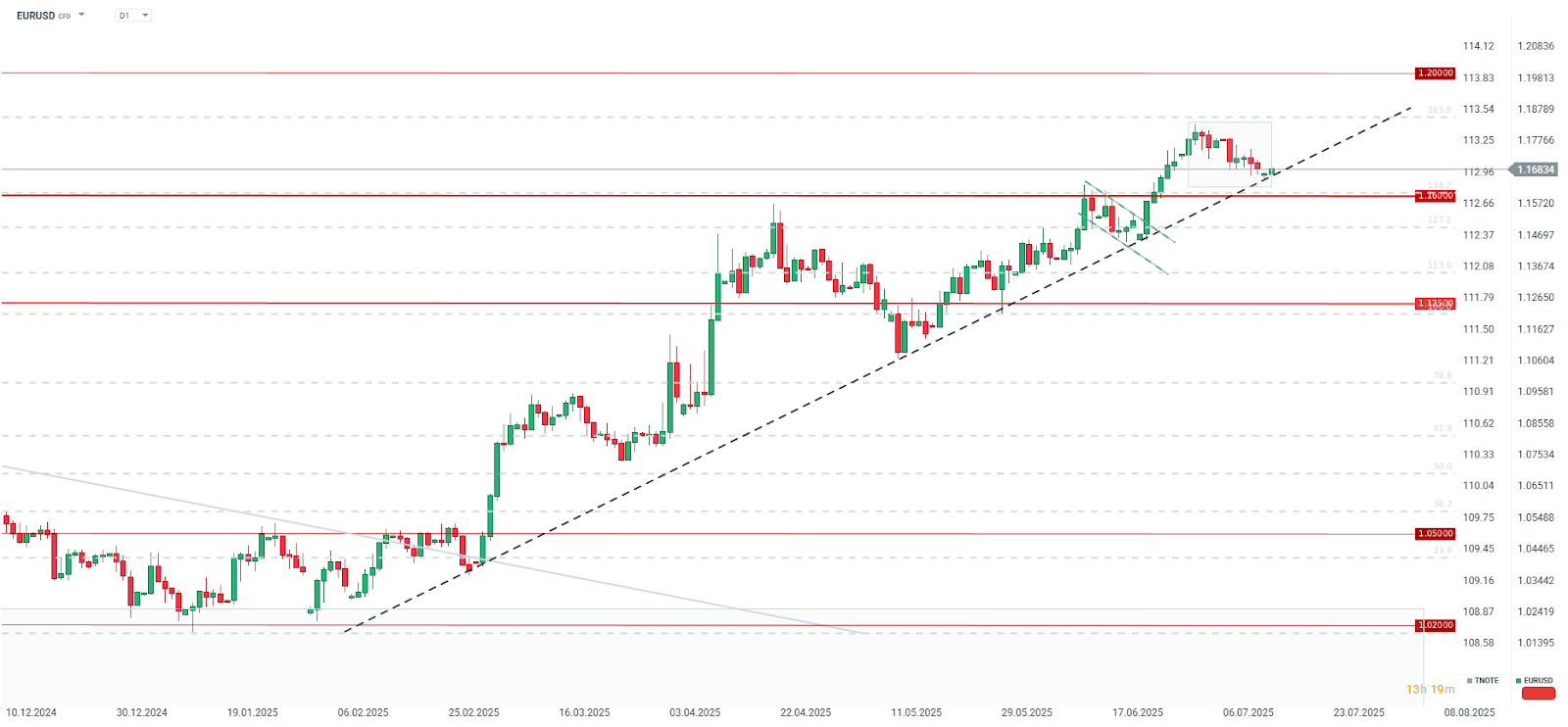 Měnový pár EURUSD otevřel týden poklesem, ale aktuálně se vrací zpět k pátečním zavíracím hodnotám. Samotná volatilita naznačuje, že investoři v tuto chvíli nevnímají situaci jako skutečnou hrozbu. Zdá se, že alespoň prozatím je tento pár ohrožen spíše jinými faktory — například změnami v měnové politice nebo potenciálním útokem na Fed, který by mohl nastat prakticky kdykoli. Zdroj: xStation5
