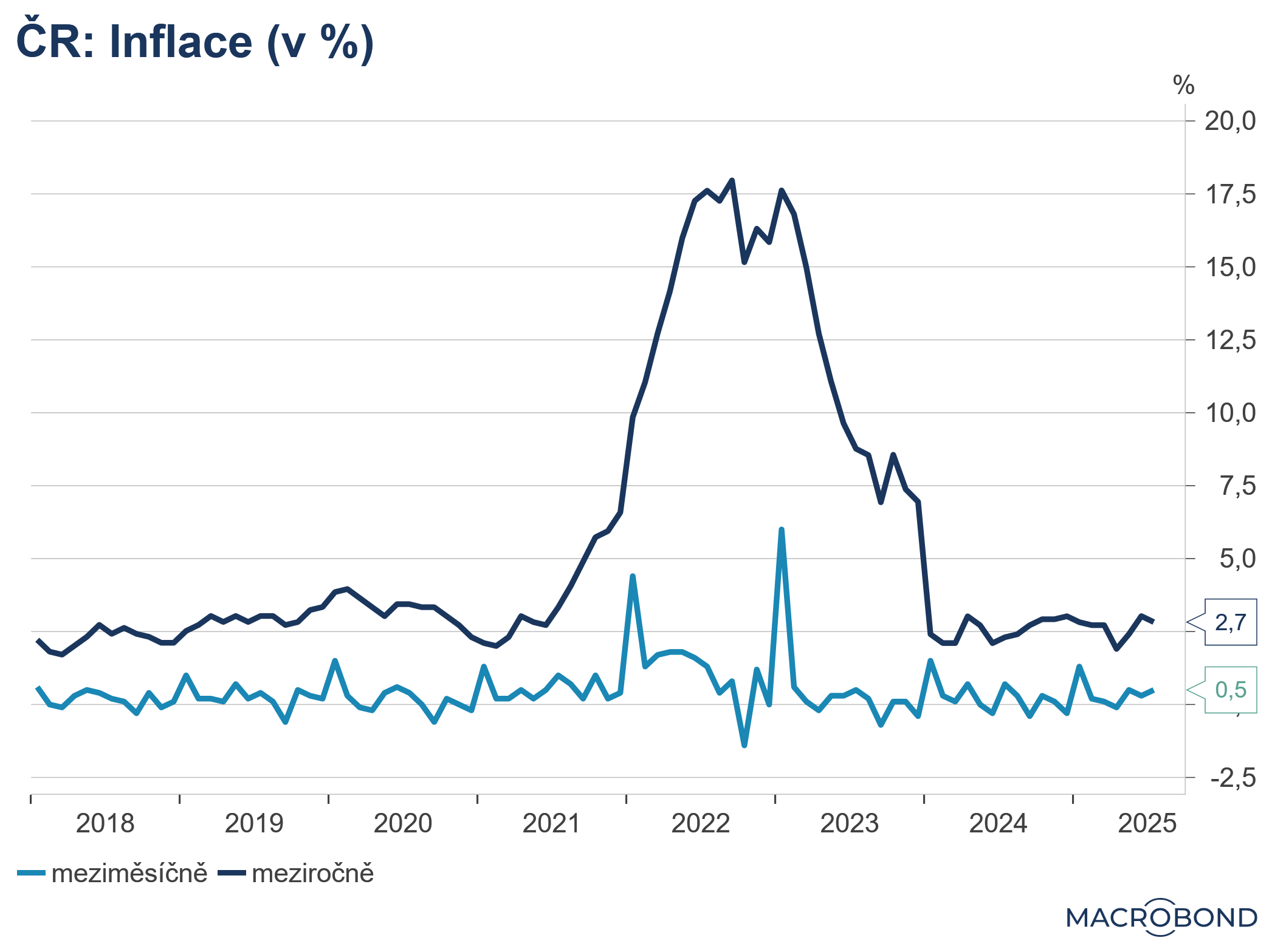- Inflace - 2020, míra inflace a její vývoj v ČR , Meziroční inflace v %