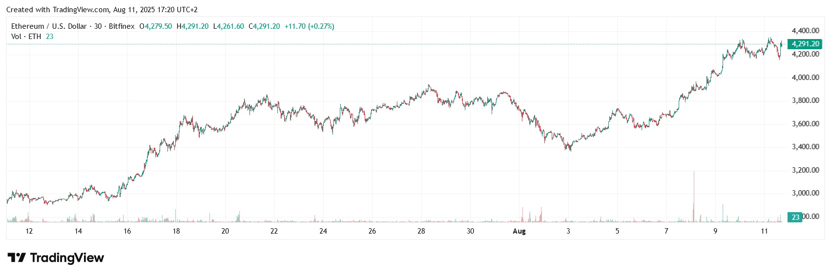 jednoduchá, Ethereum za posledních 30 dní Ethereum vzrostlo o neuvěřitelných