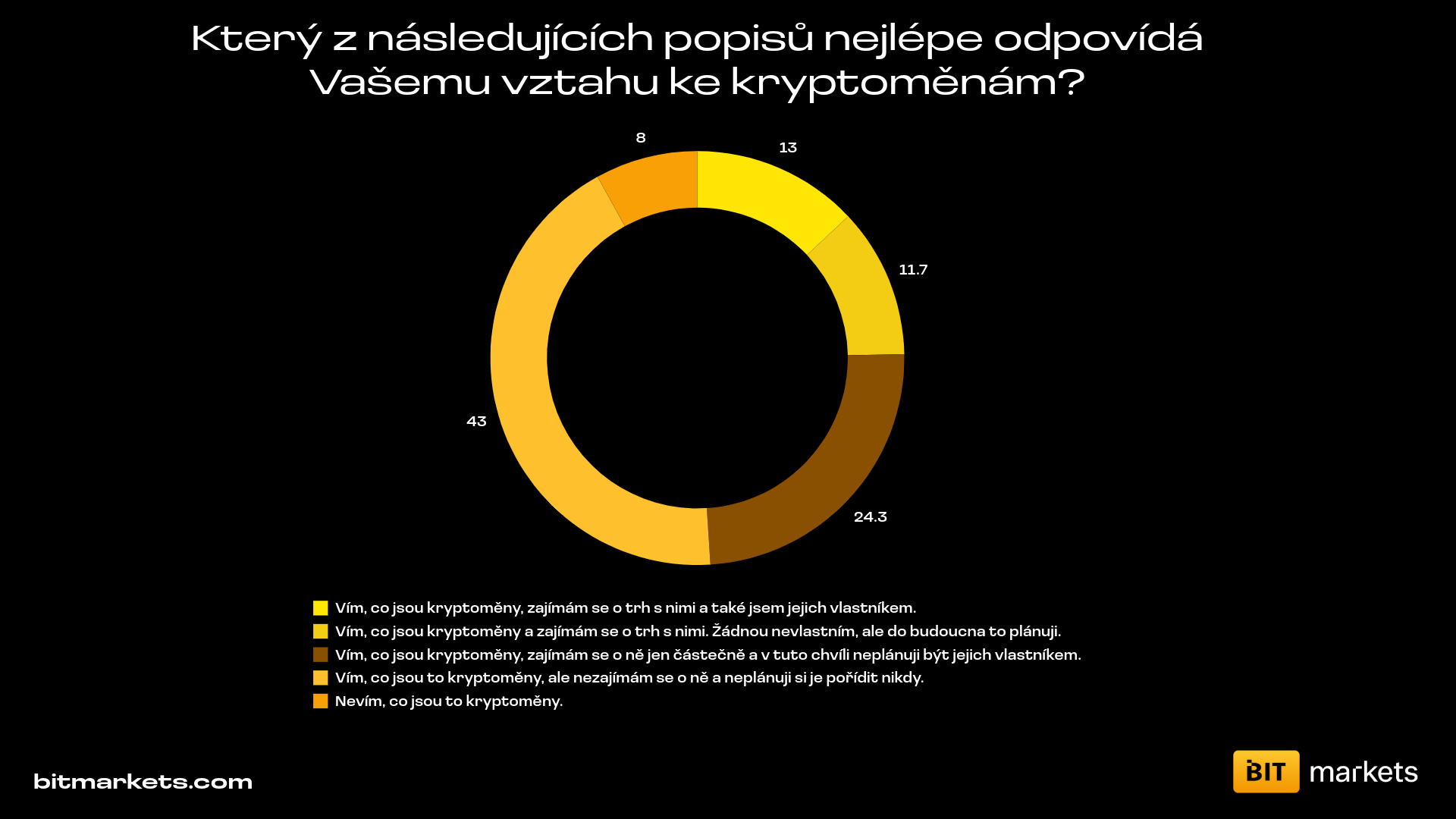 O kryptoměny se zajímá 49 % české populace. Vyplývá to z průzkumu kryptoměnové burzy BITmarkets, který pro ni na vzorku 1000 respondentů realizovala společnost Ipsos.