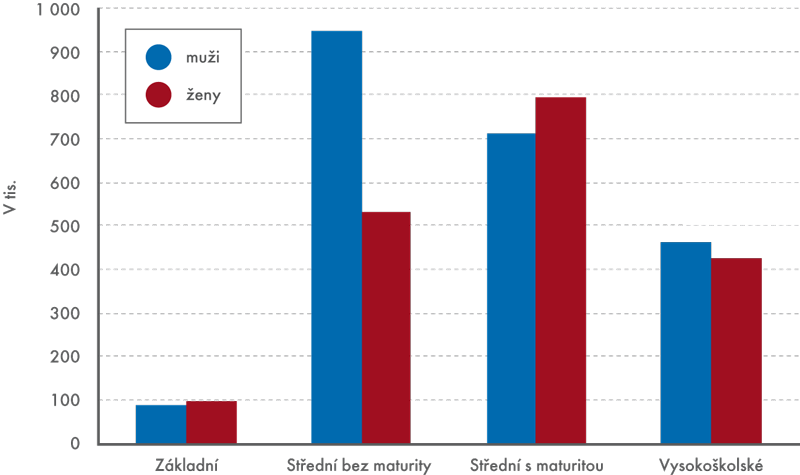 Ženy mají v průměru vyšší vzdělání než muži