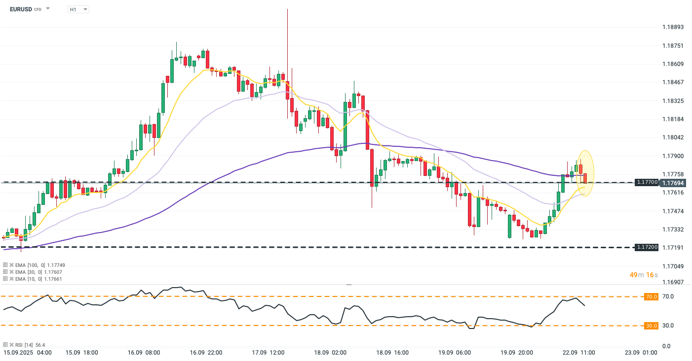 EURUSD zastavil své zotavení nad 1,177 před Musalemovým projevem a nyní testuje návrat pod tuto klíčovou úroveň. Přesto hlavní měnový pár zůstává během dne stále o 0,2 % výše.