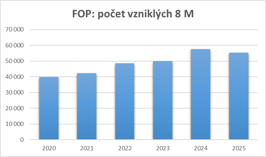 V Česku letos přibylo 20 056 podnikatelů, což je více než dvojnásobek příbytku za celý rok 2024