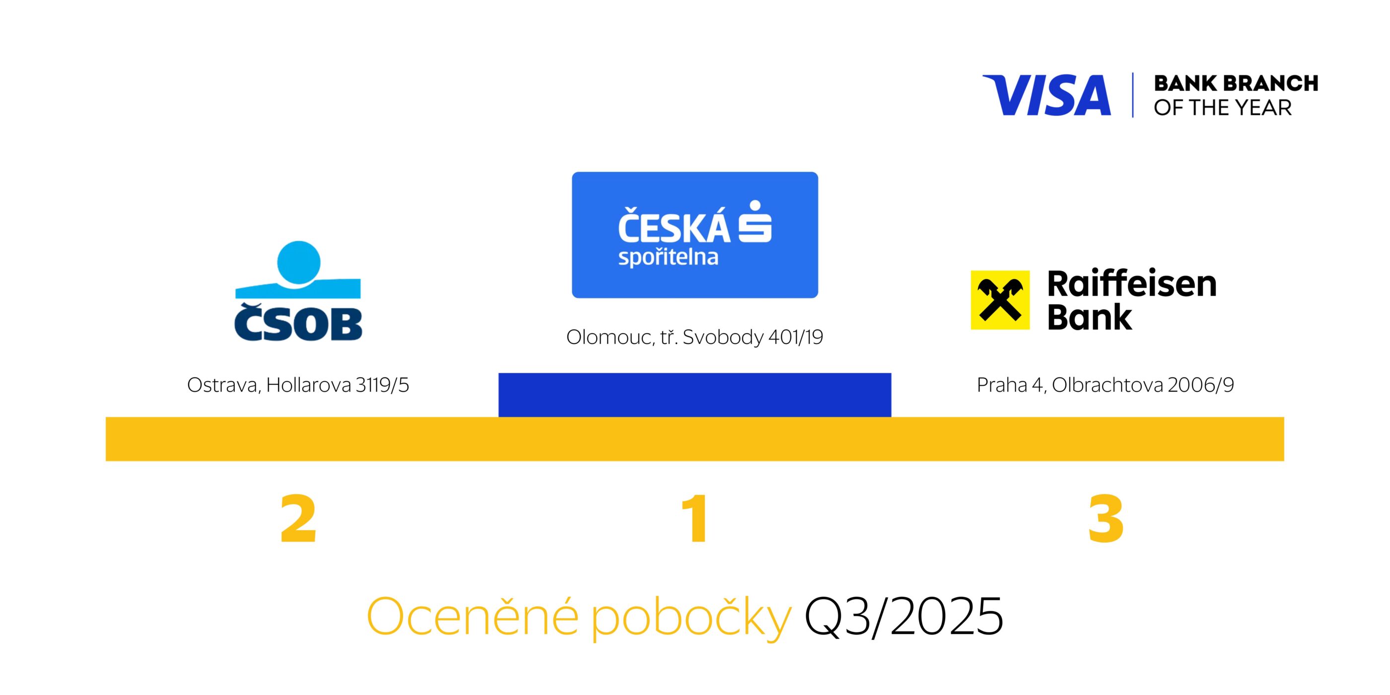 Visa Bank Branch of the Year je prestižní ocenění, které přináší společnost Visa, lídr v oblasti digitálních plateb, do České republiky. Cílem soutěže je vyzdvihnout nejlepší kamenné pobočky bank – nejen z pohledu designu a modernizace, ale především z hlediska zákaznického zážitku a technologické vyspělosti.