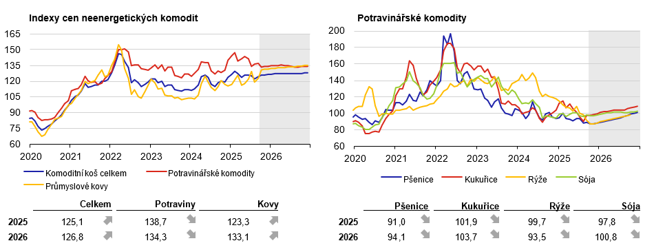 Poznámka: Struktura indexů cen neenergetických komodit odpovídá složení komoditních indexů The Economist. Ceny jednotlivých komodit jsou vyjádřeny jako indexy 2010 = 100.