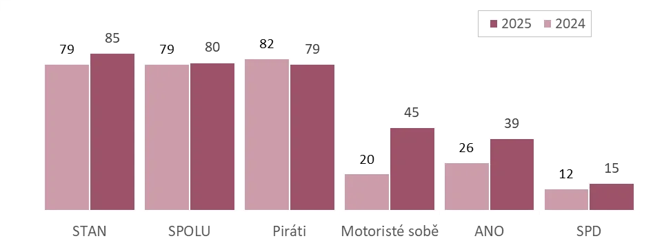 Poznámka: Pro menší politická uskupení jsou údaje vzhledem k nízkému počtu respondentů pouze orientační.