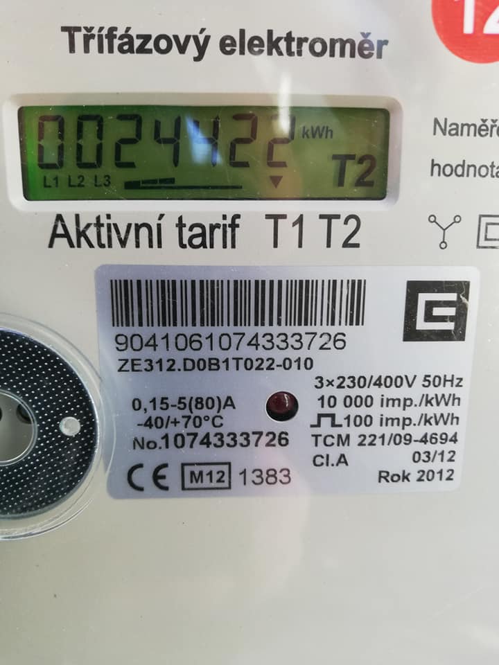 Z maximálního čtvrthodinového činného elektrického výkonu odebraného v rámci zúčtovacího období ( 𝑃 ) v kW se vypočte ekvivalentní jmenovitá proudová hodnota (EPH) hlavního jističe před elektroměrem v A následovně: