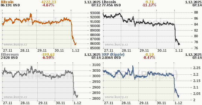 Kryptoměny, vývoj kurzu za týden