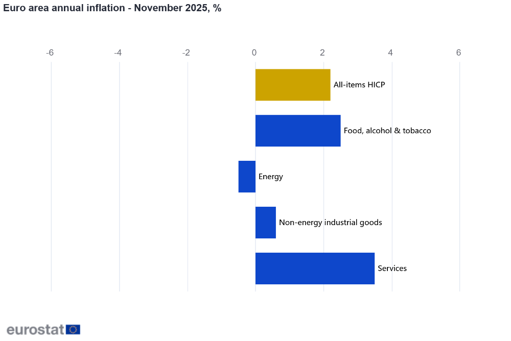 Euro area annual inflation up to 2.2% (2.12.2025)
