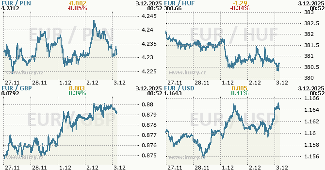 Polská centrální banka dnes odpoledne velmi pravděpodobně prodlouží cyklus snižování úrokových sazeb, když sníží základní úrokovou sazbu ze 4,25 % na 4,0 %. Hlavním argumentem pro vedení NBP by měla být rychle klesající inflace v posledních měsících, která podle bleskového odhadu statistického úřadu klesla v listopadu na 2,4 %, tedy pod inflační cíl centrální banky. Trh se snížením o 25 bazických bodů již plně počítá, takže jakékoliv jiné rozhodnutí by bylo velkým překvapením nejen pro polské dluhopisy, ale i pro zlotý. Z pohledu tržních očekávání pak bude důležitá zítřejší tisková konference prezidenta NBP Glapinského (v 15 hodin), která by mohla naznačit, kde Výbor pro měnovou politiku vidí rovnovážnou úroveň pro základní úrokovou sazbu.