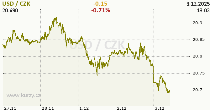 - Graf USD / Kč, ČNB, grafy kurzů měn