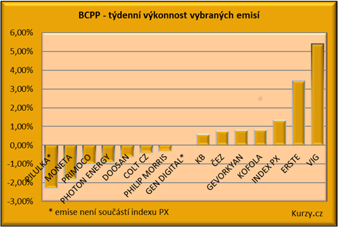 Až na akcie GEVORKYAN již ostatní tituly z indexu PX ztratily. Akcie COLT se po předchozím nádechu navrátily k jižnímu směrování. Své také mohly psychologicky sehrát zveřejněné další prodeje firemních akcií ze strany předsedy dozorčí rady. Jak se ukázalo, Jan Drahota na přelomu měsíce postupně nakonec prodal celkem 100 tis. akcií COLT za téměř 72 mil. Kč. Zda sama společnost i tento týden odkupovala vlastní akcie, nebylo zatím zveřejněno.