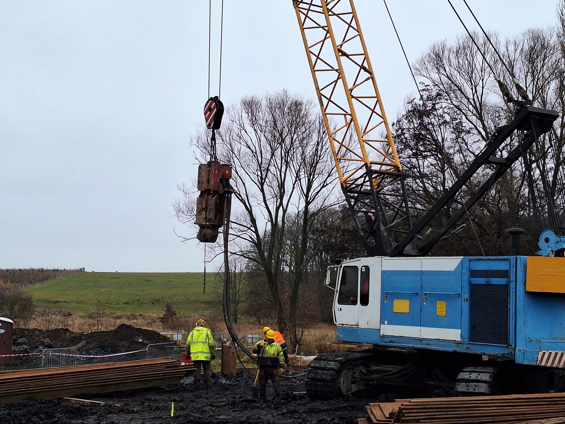 Pracuje se i na záporovém pažení za pomocí těžké techniky. Na rozlehlém staveništi jsou také vrtací soupravy, se kterými jsou vrtány piloty pro mostní objekty, probíhá svařování armatur. V přípravě jsou betonáže. Projekt zahrnuje rovněž výstavbu šesti mimoúrovňových křižovatek, osmi protihlukových stěn o celkové délce 1 106 m nebo dvaceti pěti zemních valů.