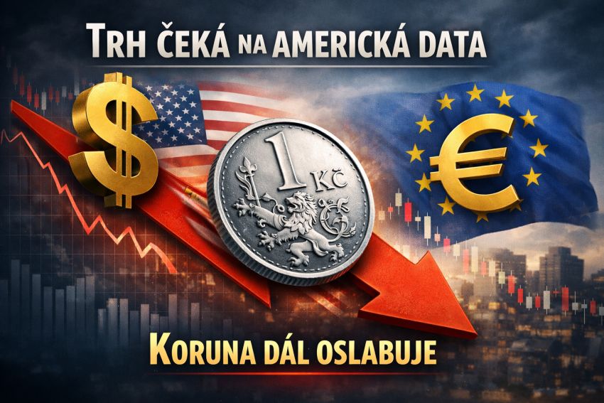 Koruna slábne vlivem výhledu na nižší sazby ČNB. Klíčová budou odpolední data z amerického trhu práce.