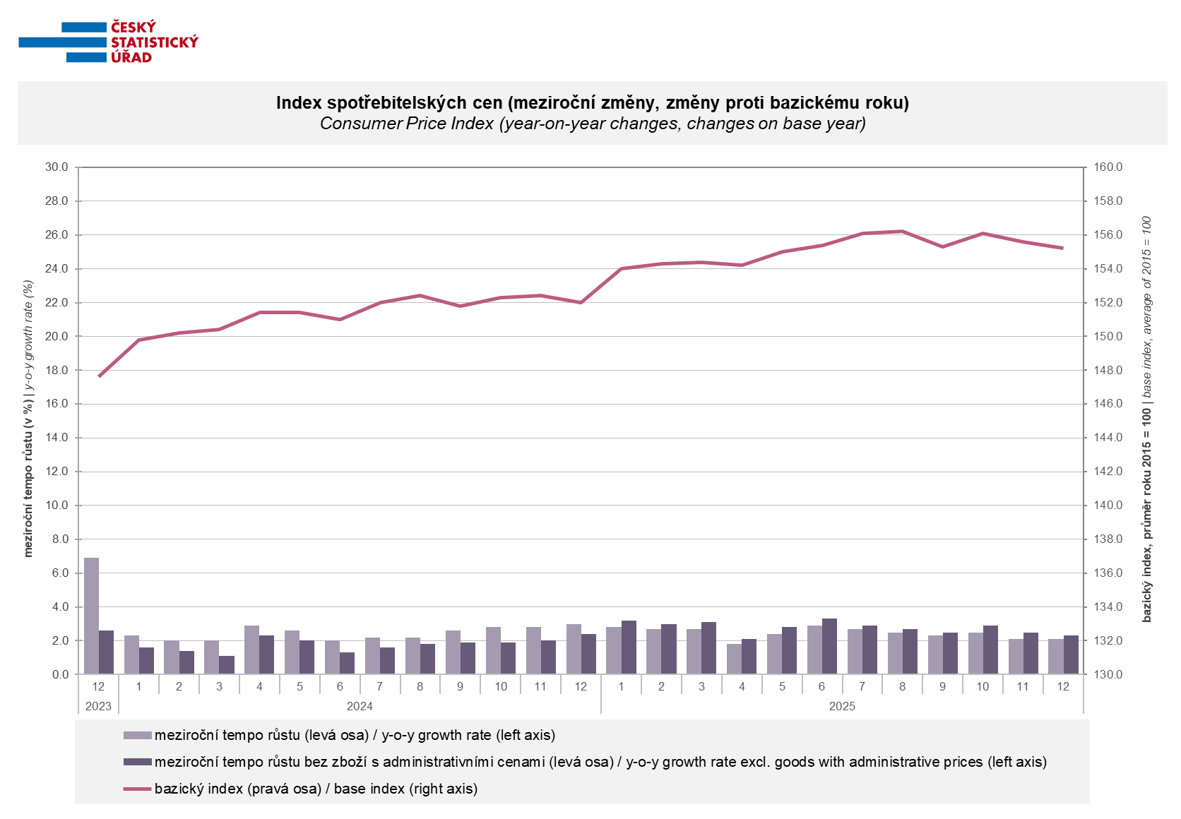 Indexy spotřebitelských cen (životních nákladů) - základní členění - prosinec 2025