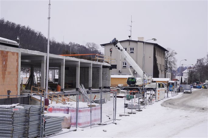 Výstavba výpravní budovy na nádraží v Mladé Boleslavi zdárně pokračuje