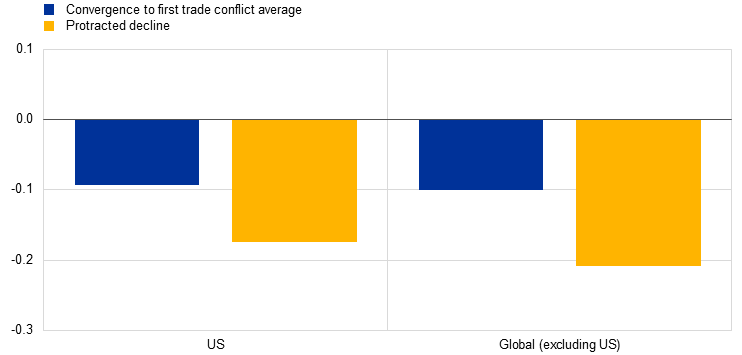 In conclusion, adjusting TPU measures can improve their indicator properties and make them easier to interpret. This box argues that text-based measures of trade policy uncertainty might capture a broader concept of uncertainty than uncertainty surrounding trade policy announcements and implementation alone. Once confounding influences and media cycle effects are removed, adjusted measures of trade policy uncertainty yield less sizeable macroeconomic impacts than commonly reported in the literature. In addition, if a more restrictive definition of trade policy uncertainty is adopted, these alternative indicators can readily be used to define scenarios for conditional forecasting and projection exercises. In this context, the adjusted TPU index was used as a starting point for analysing the impact of trade policy uncertainty in the Eurosystem/ECB staff macroeconomic projections for the euro area, and was employed both for baseline projections and scenario analysis.