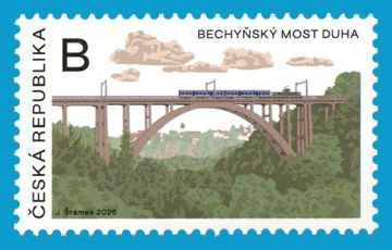 příležitostná poštovní známka - katalogové číslo 1340 Ministerstvo průmyslu a obchodu České republiky vydává dne 20. ledna 2026 v emisi BECHYŇSKÝ MOST DUHA příležitostnou poštovní známku s nominální hodnotou zastoupenou písmenem B. Písmeno B odpovídá ceně za vnitrostátní Obyčejné psaní – standard do 50 gramů v ekonomickém režimu dodání, dle aktuálního platného ceníku v době vydání emise v hodnotě 31 Kč. Na známce je most Duha se siluetou města Bechyně v pozadí. Přes most projíždí elektrická lokomotiva řady 113 s připojenými osobními vozy typu Btn.