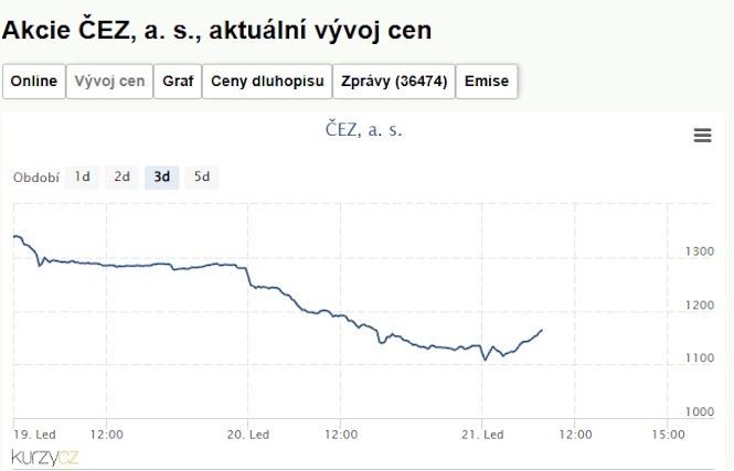 - Akcie ČEZ - ČESKÉ ENERGETICKÉ ZÁVODY, aktuální vývoj cen, akcie-cz online