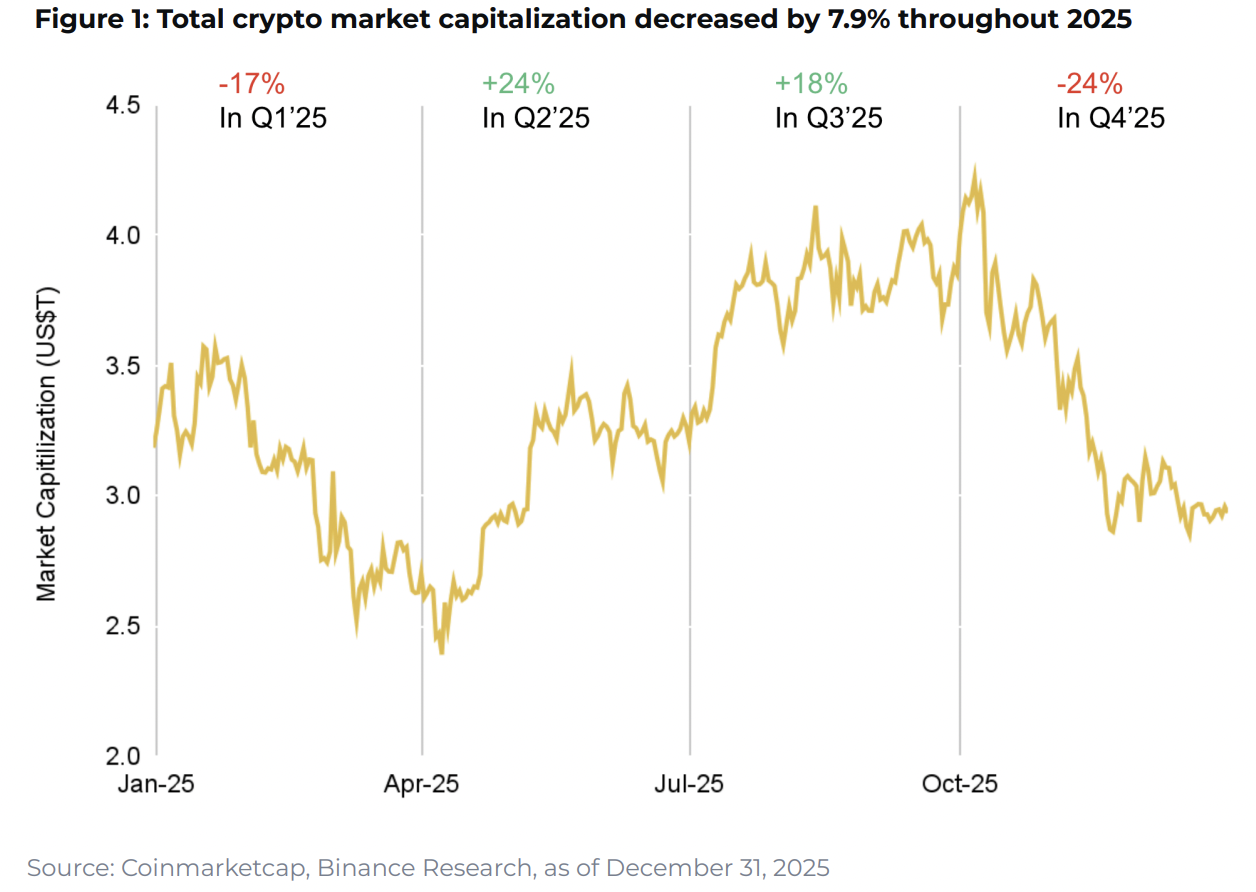 Binance Research: Rekordy střídá nejistota, kryptoměnový trh skončil rok 2025 v mírném minusu