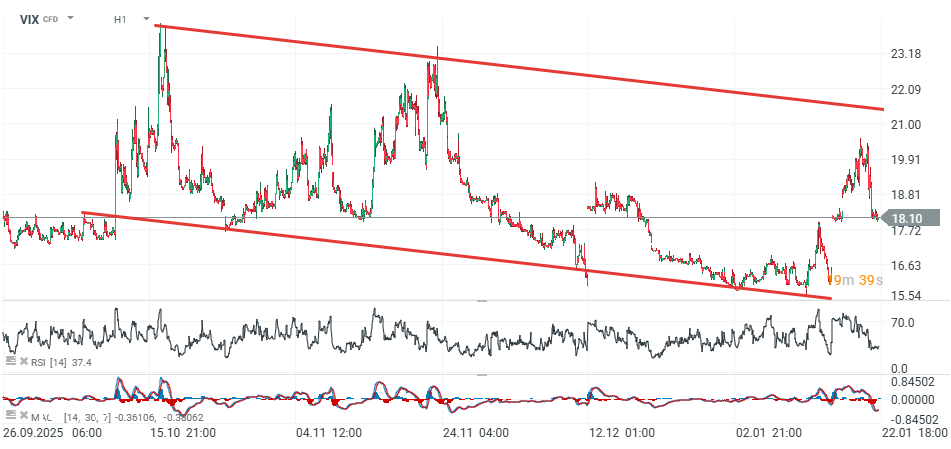 - Pokud se uptrend akciových indexů udrží, VIX může dále klesnout směrem k úrovni 16. Naopak v případě prudké změny sentimentu a prohloubení výprodeje amerických akcií nelze vyloučit retest zóny 21, což odpovídá horní hraně cenového kanálu.