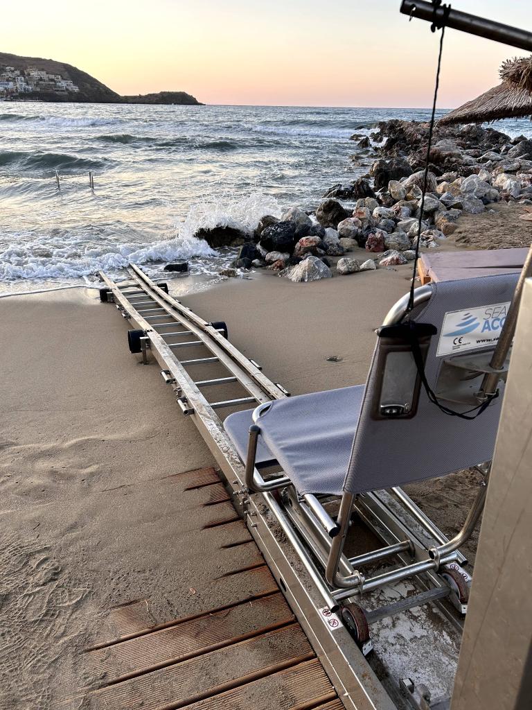 Na konci pláže Livadi je místo určené pro vozíčkáře, je zde pro ně převlékárna, toaleta a dokonce transportní křeslo do moře.