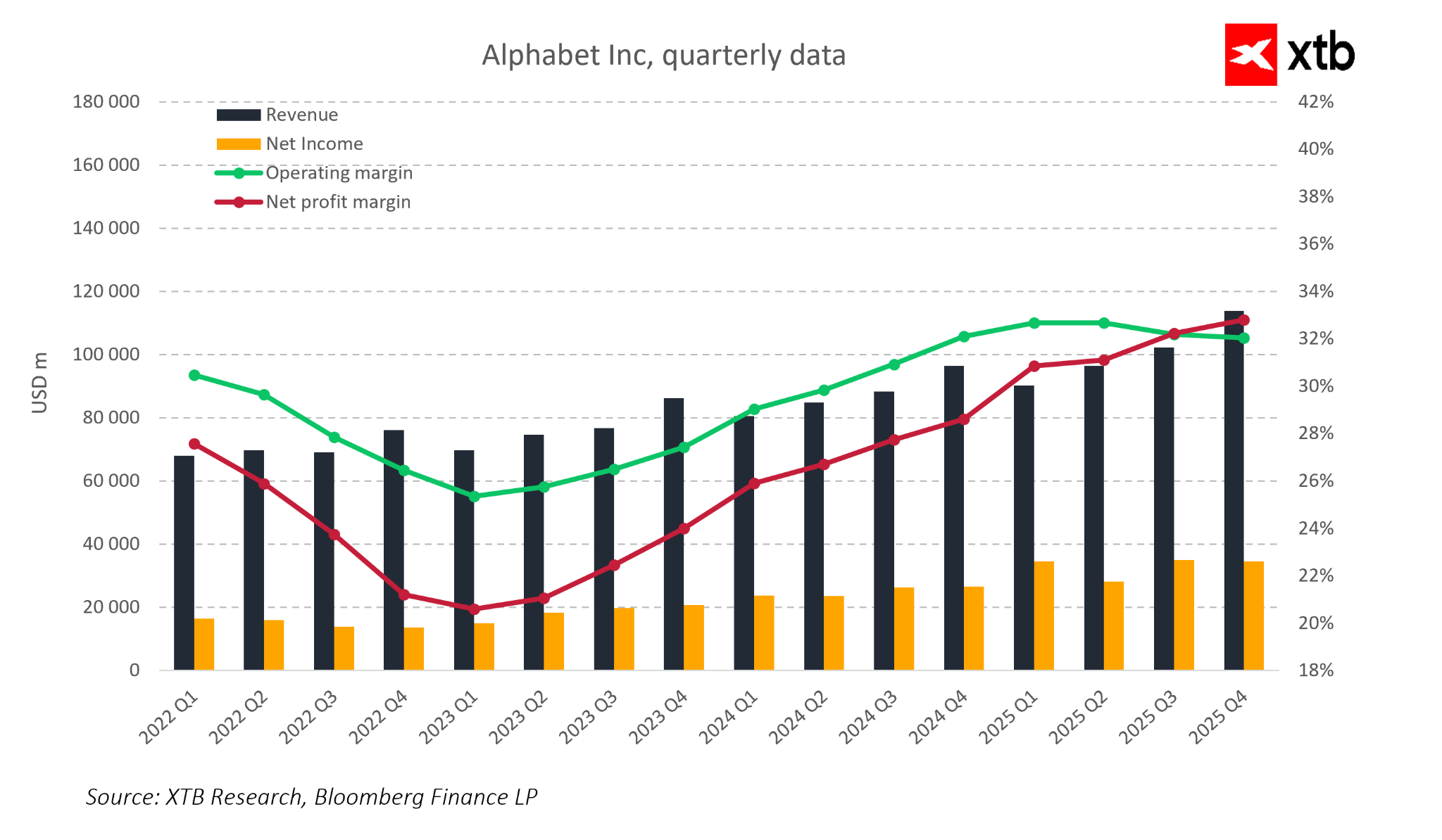 Alphabet znovu potvrdil, že dokáže generovat růst tržeb i na tak vyspělém trhu, což se ještě před několika lety zdálo být nemožné. Je třeba zdůraznit, že tento růst není výsledkem jednorázových opatření nebo sezónních výkyvů, ale plodem stabilního obchodního modelu a čím dál efektivnější integrace AI do klíčových služeb společnosti.