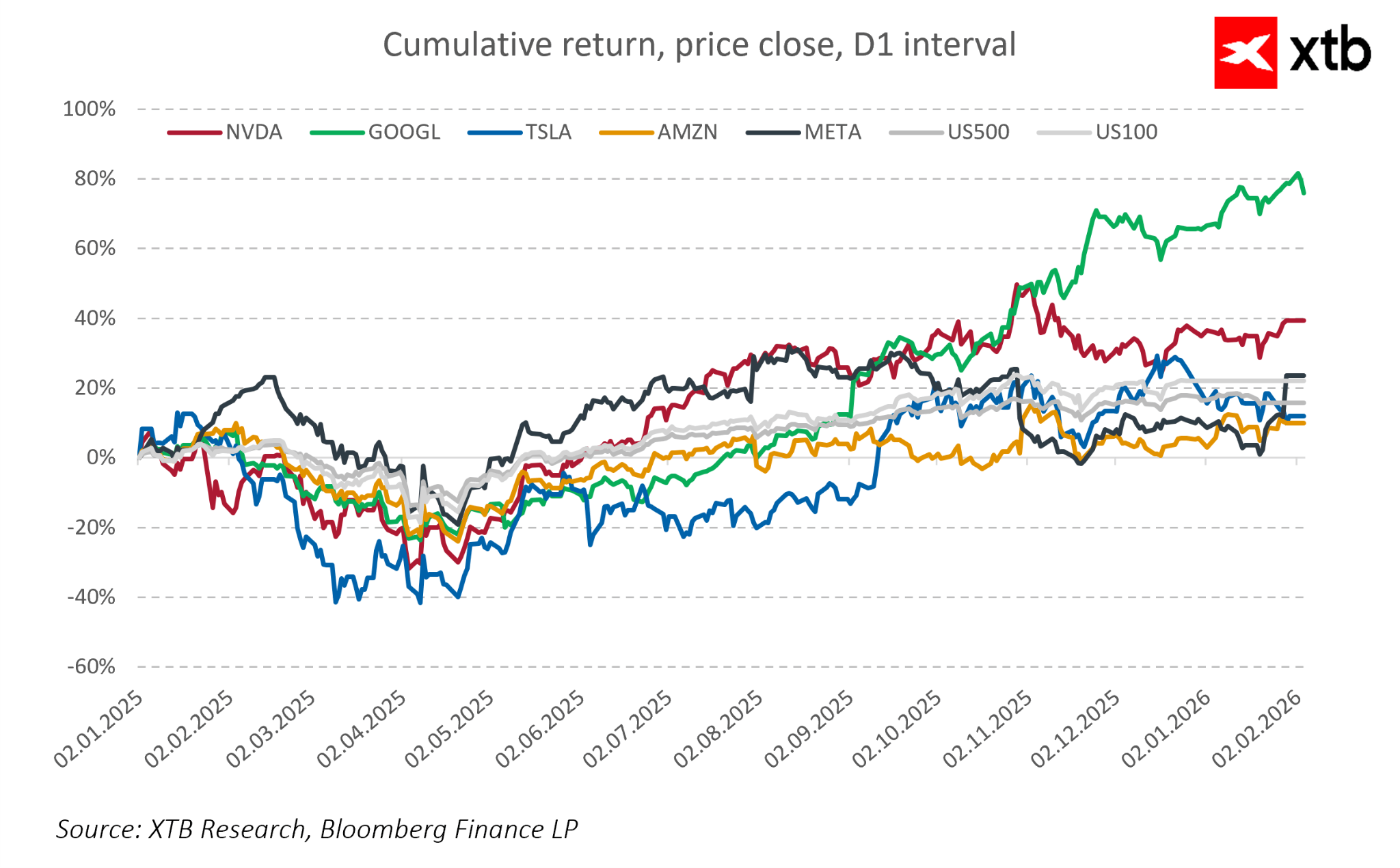 Porovnání tržní výkonnosti Alphabetu s ostatními technologickými giganty ukazuje, že od začátku roku 2025 společnost konzistentně přináší vyšší výnosy, čímž posiluje důvěru investorů ve svou strategii a růstový potenciál.