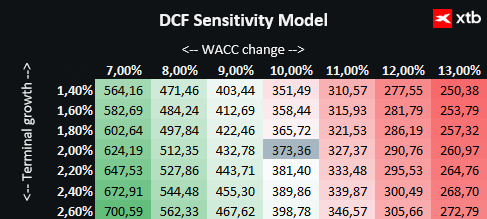 Na základě DCF analýzy je odhadovaná hodnota jedné akcie Alphabetu 373,36 USD, zatímco aktuální cena činí 317 USD, což implikuje potenciál růstu přibližně o 18 %. To naznačuje, že společnost nejenže vykazuje solidní finanční fundamenty, ale také nabízí atraktivní výhled pro investory, kteří věří v další růst trhů s AI, cloudem a digitální reklamou.