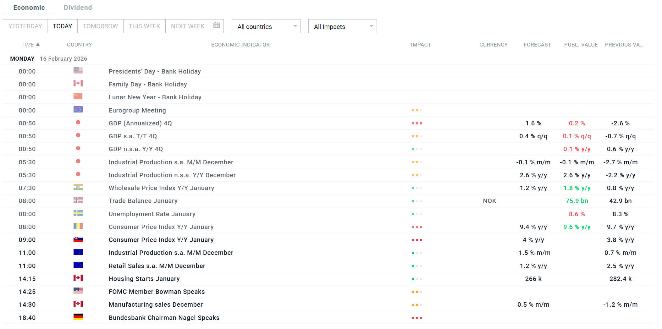 Ekonomický a korporátní kalendář: Bankovní svátek v Číně, USA a Kanadě (16.02.2026)
