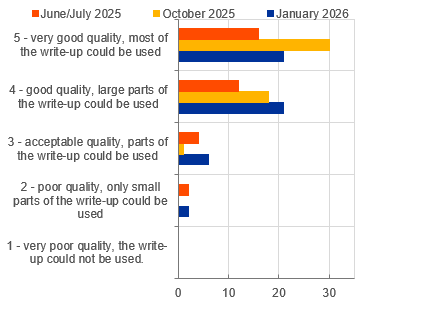 Even while still in the process of development, these LLM summaries are estimated to have saved around 25 person-hours in each of the first two survey rounds. And at least 31 person-hours in the latest iteration in January 2026. This modernisation of our process also reduces the risk that relevant information is lost or misinterpreted.
