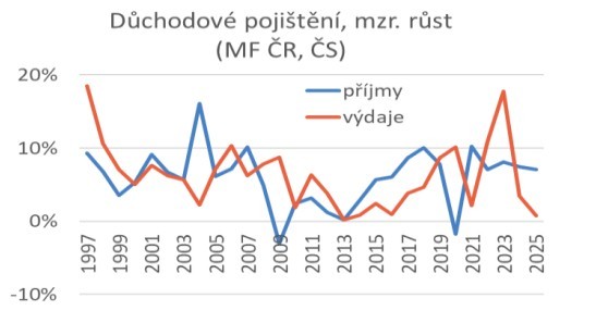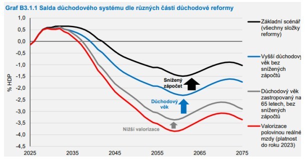 Šálivost vývoje „penzijního účtu“. Zajímavý je ovšem, výhled důchodů v dalších letech a desetiletích