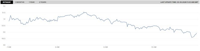 Plyn se v průběhu dnešního dopoledne dostal pod hranici 50 EUR/MWh.