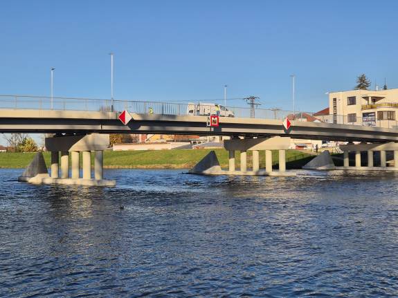 Obr.: Nové proměnné plavební značení na silničním mostě v Napajedlech